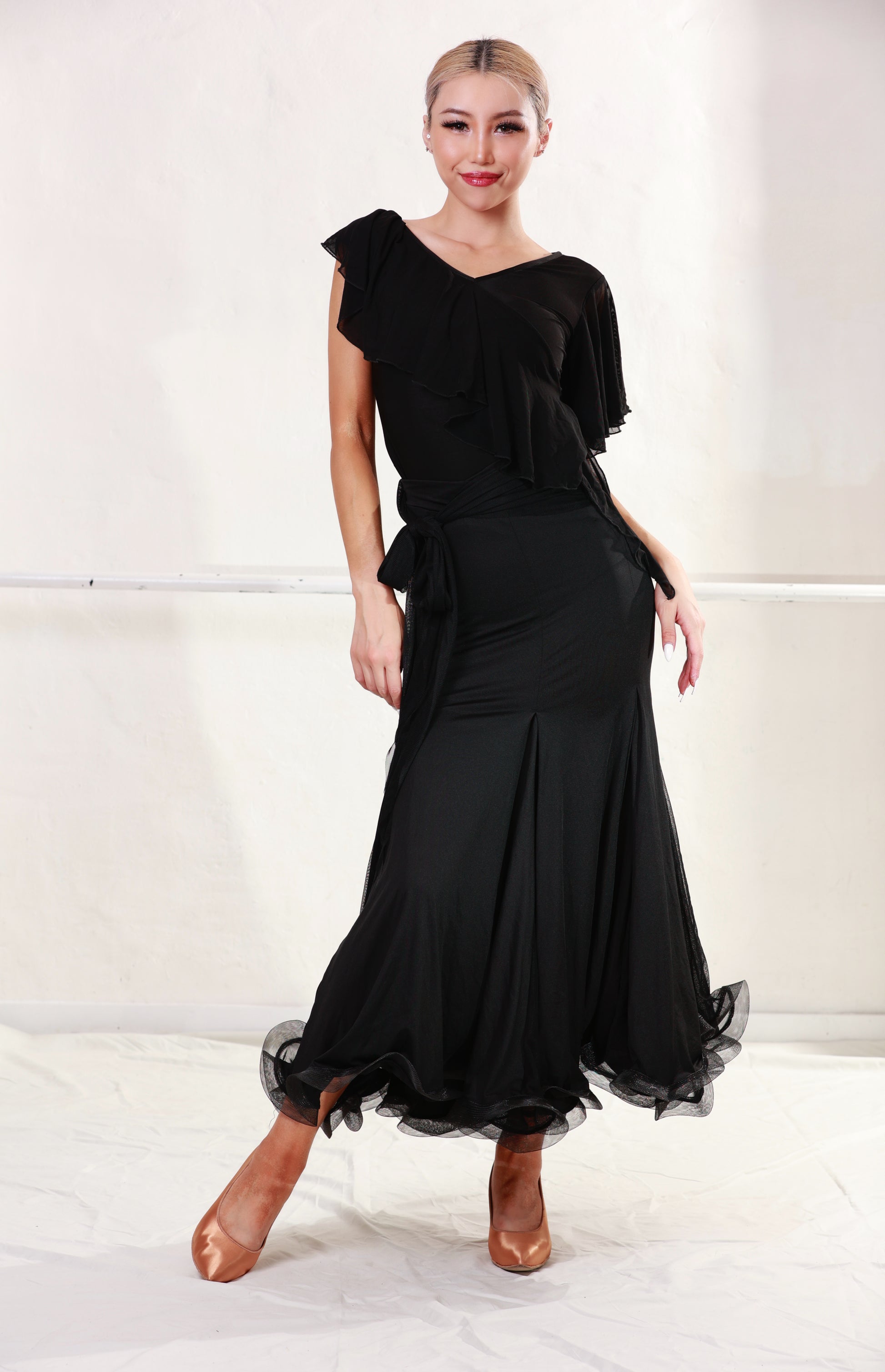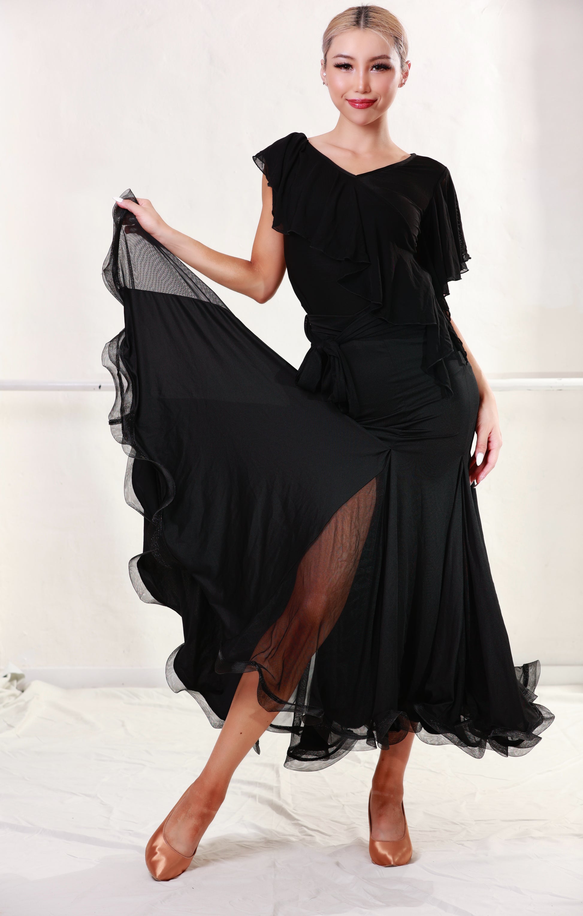 Elevate your ballroom game with our sleek Ballroom Black Dress. The dress features a striking black veil that adds a touch of elegance to your moves. Perfect for any ballroom occasion, this dress will make you stand out and impress your audience.