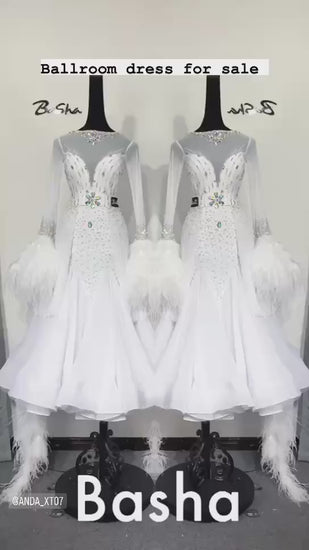 This secondhand ballroom dress, designed by Basha and adorned with Swarovski crystals, is in excellent condition despite being worn only 1-2 times. Suitable for ladies or girls between 156-168cm and 45-52kg, this dress offers elegance and quality at a discounted price.