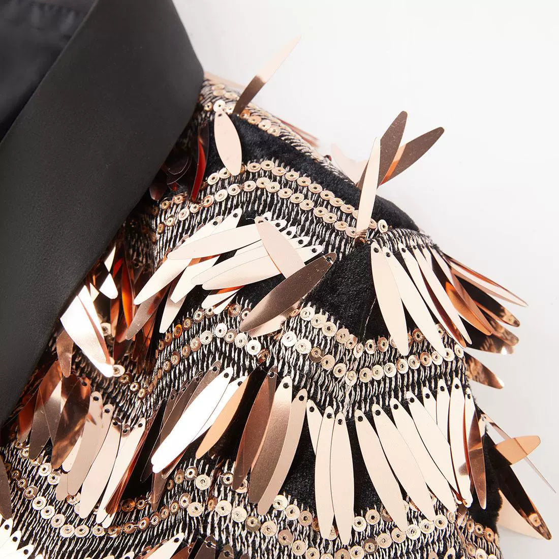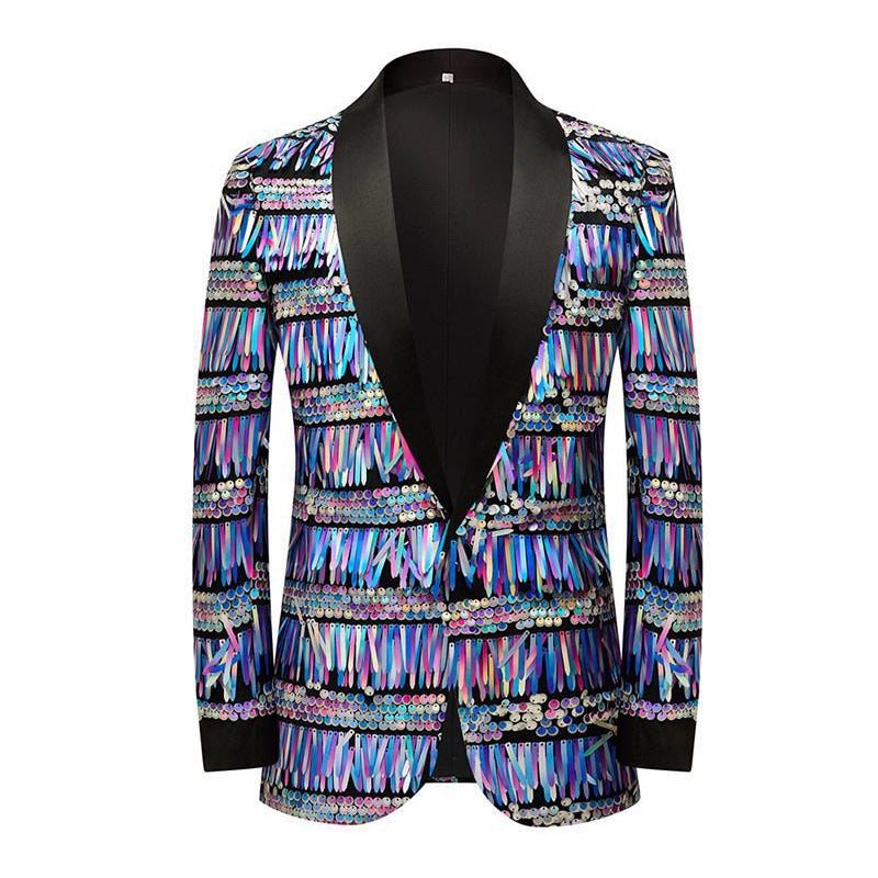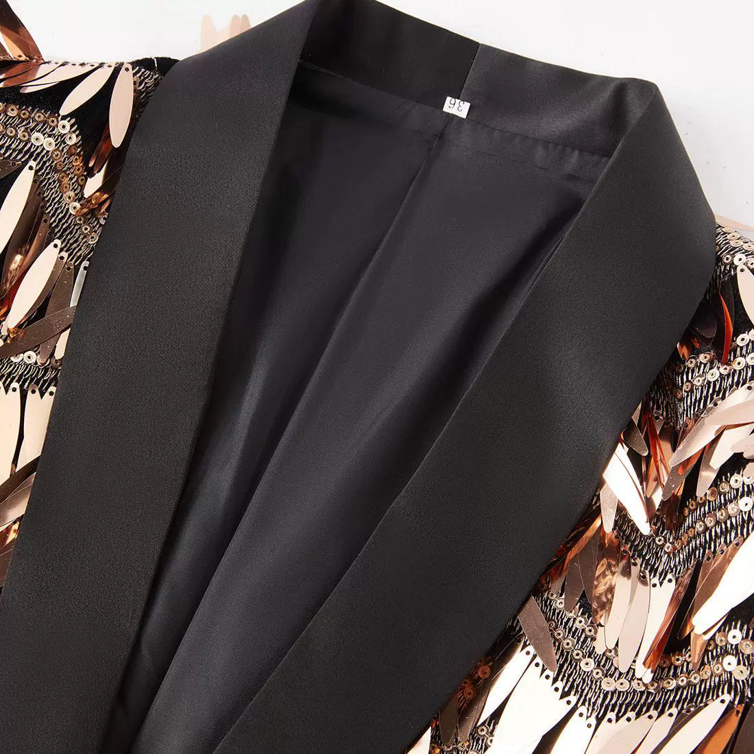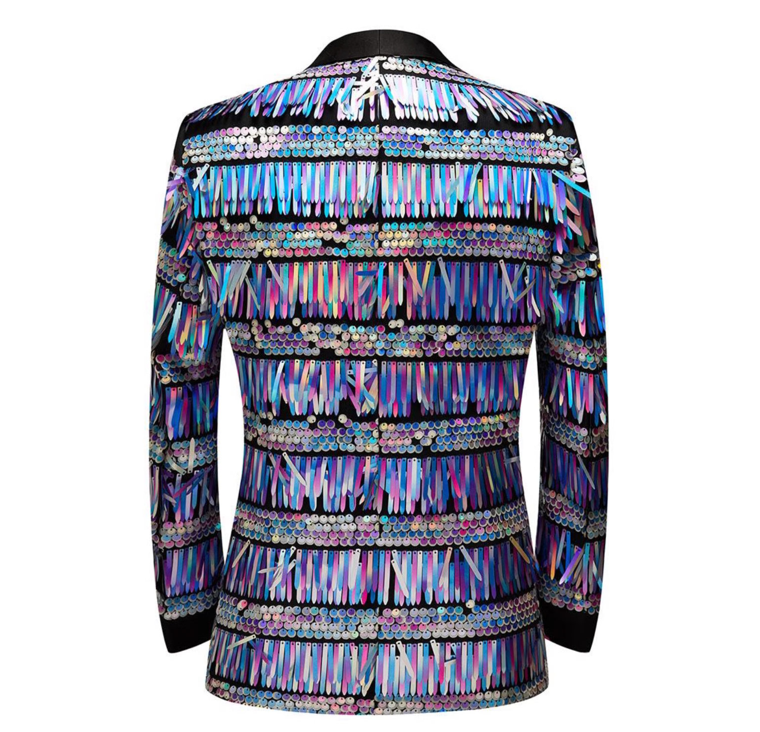 Expertly designed for the modern and sophisticated man, the Gold Knight blazer boasts a stunning champagne gold color and luxurious long fringe sequins. With a sleek, slim fit and stylish design, this blazer is perfect for any occasion, whether it’s a night at the club or a performance on stage. Elevate your style and make a statement with Gold Knight.