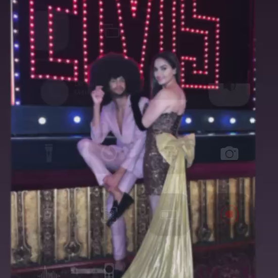 "Elevate your red carpet look with our High-end Golden Drag Butterfly Bow Dress. The sexy short skirt paired with a stunning, high-end golden trailing large bow exudes elegance and sophistication. Walk the red carpet with confidence in this show-stopping dress."